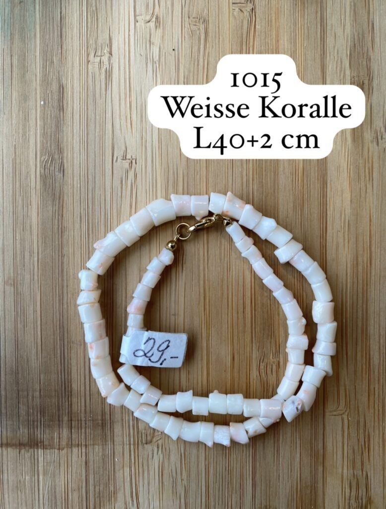 Weisse Koralle – Corallium album. Die Koralle besteht aus nahezu reinem Calcium. Sie verkörpert Struktur, Halt und gestaltende Kraft. Reguliert den Calcium-Phosphorstoffwechsel und unterstützt daher Wachstum und Knochenaufbau.